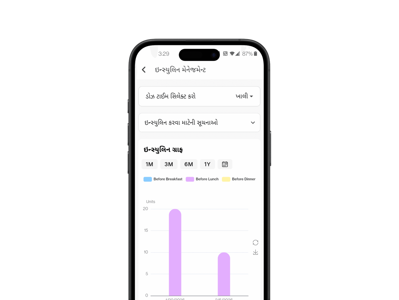 તમારા શુગર રીડિંગ્સ સાથે ઇન્સ્યુલિન લેવાનું રેકોર્ડ કરો.